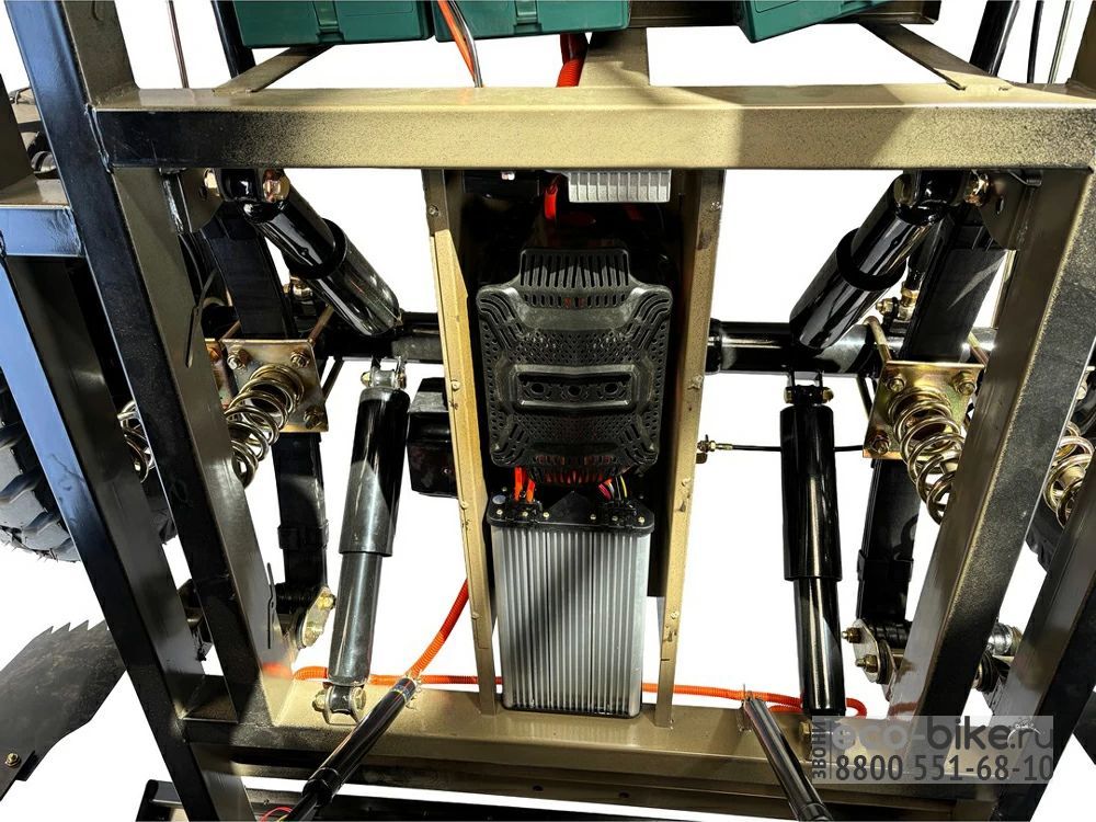 - Мотор: 3000 Вт (тяговый), КВАДРАТНЫЙ, с усиленным грузовым задним мостом. Полуось на быстросъёмах с подшипником — надёжная работа при максимальных нагрузках.